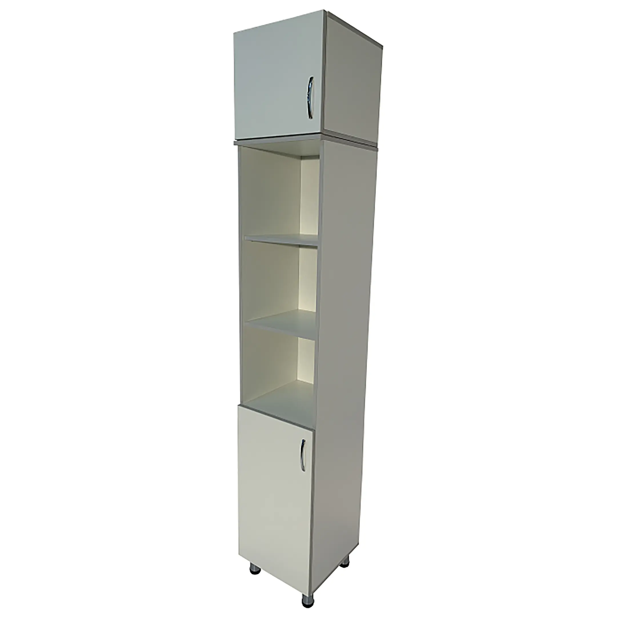 • Ниша шкафа разделена на отделения, что помогает эффективно организовать хранение и быстро находить необходимые материалы.