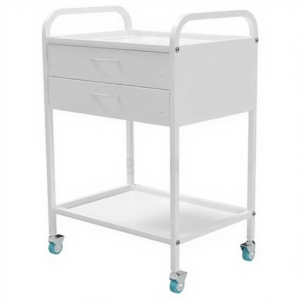 Стол медицинский инструментальный СМИ-02-02 (полки металл + нерж., колёса серая резина) — это компактная передвижная тумба, предназначенная для размещения инструмента, лекарственных препаратов и приборов в медицинских учреждениях и лабораториях. Модель имеет каркас из профильной стальной трубы, два выдвижных ящика и комбинированные полки (металл и нержавеющая сталь).