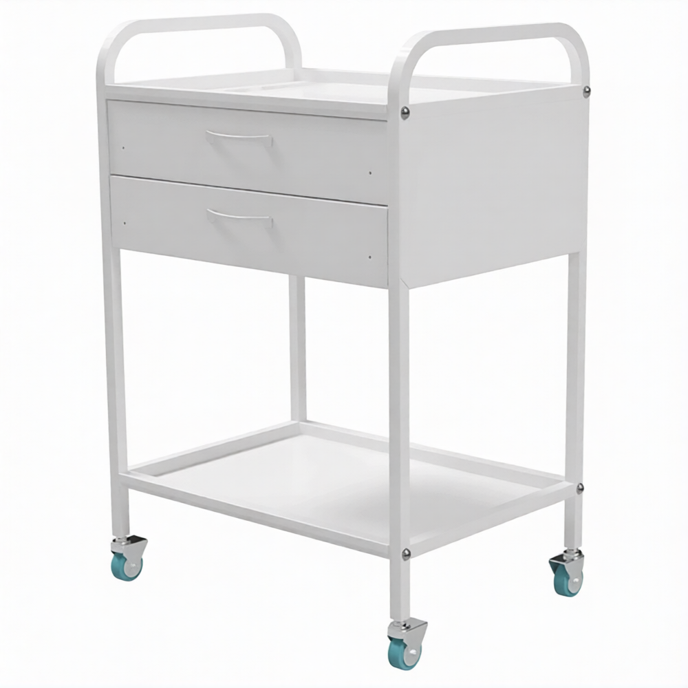 Стол медицинский инструментальный СМИ-02-02 (полки нерж., колёса серая резина) предназначен для размещения инструмента, лекарственных препаратов и приборов.