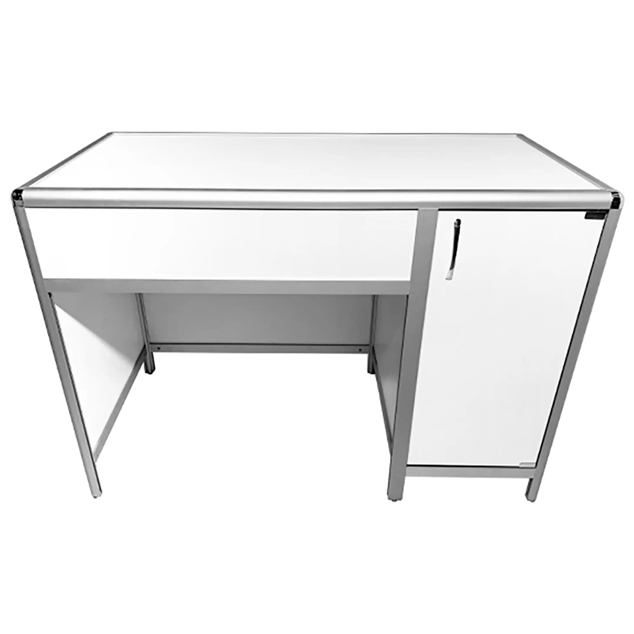 Стол лабораторный MED 10.004al (белый) — это надежное и универсальное решение для создания комфортного рабочего пространства сотрудников в лабораториях и медицинских учреждениях. Модель оснащена удобной тумбой с распашной дверкой и полкой внутри, расположенной справа. Каркас выполнен из алюминиевого профиля, столешница из ЛДСП толщиной 16 мм.