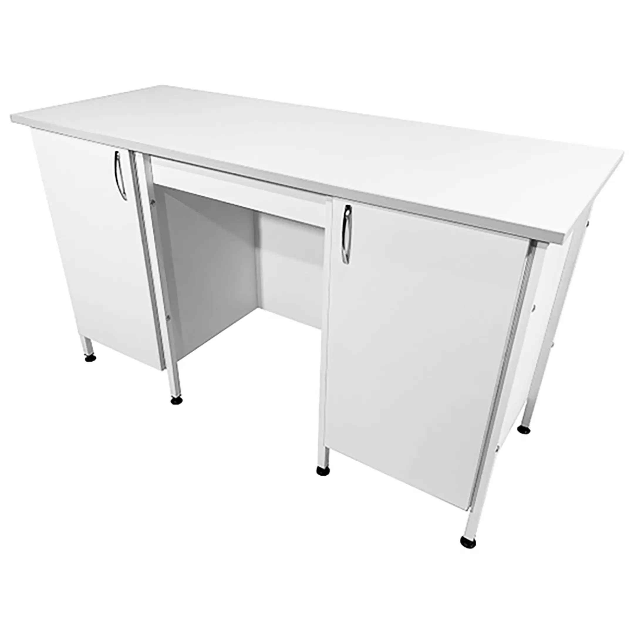 Стол лабораторный СЛ 12.014 (белый) — это идеальное решение для создания эффективного и удобного рабочего пространства в лабораториях и медицинских учреждениях. Модель оснащена двумя тумбами с распашными дверками и полками внутри. Каркас выполнен из стального профиля, столешница из ЛДСП толщиной 22 мм.