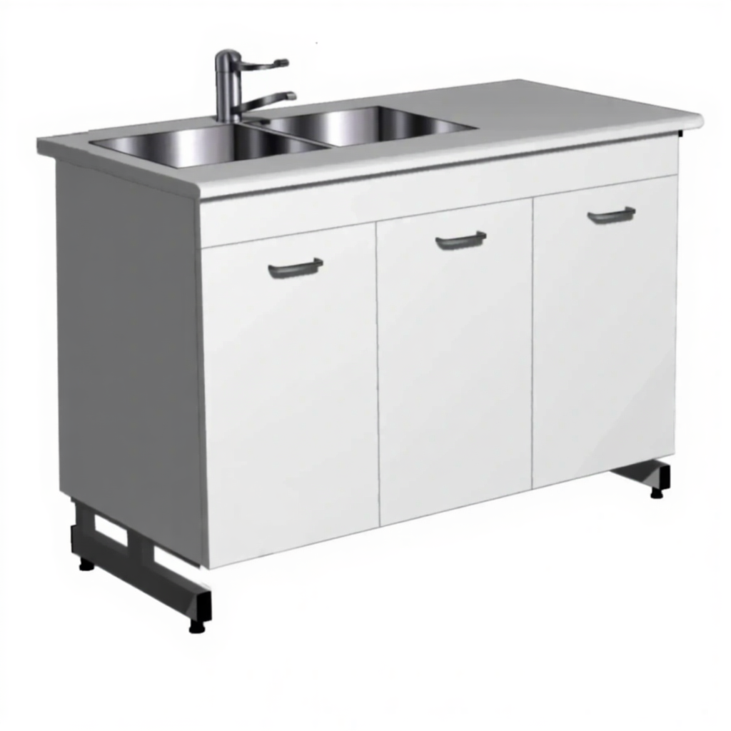 - Удобная система хранения — тумба с тремя дверками для хранения лабораторного инвентаря и посуды.