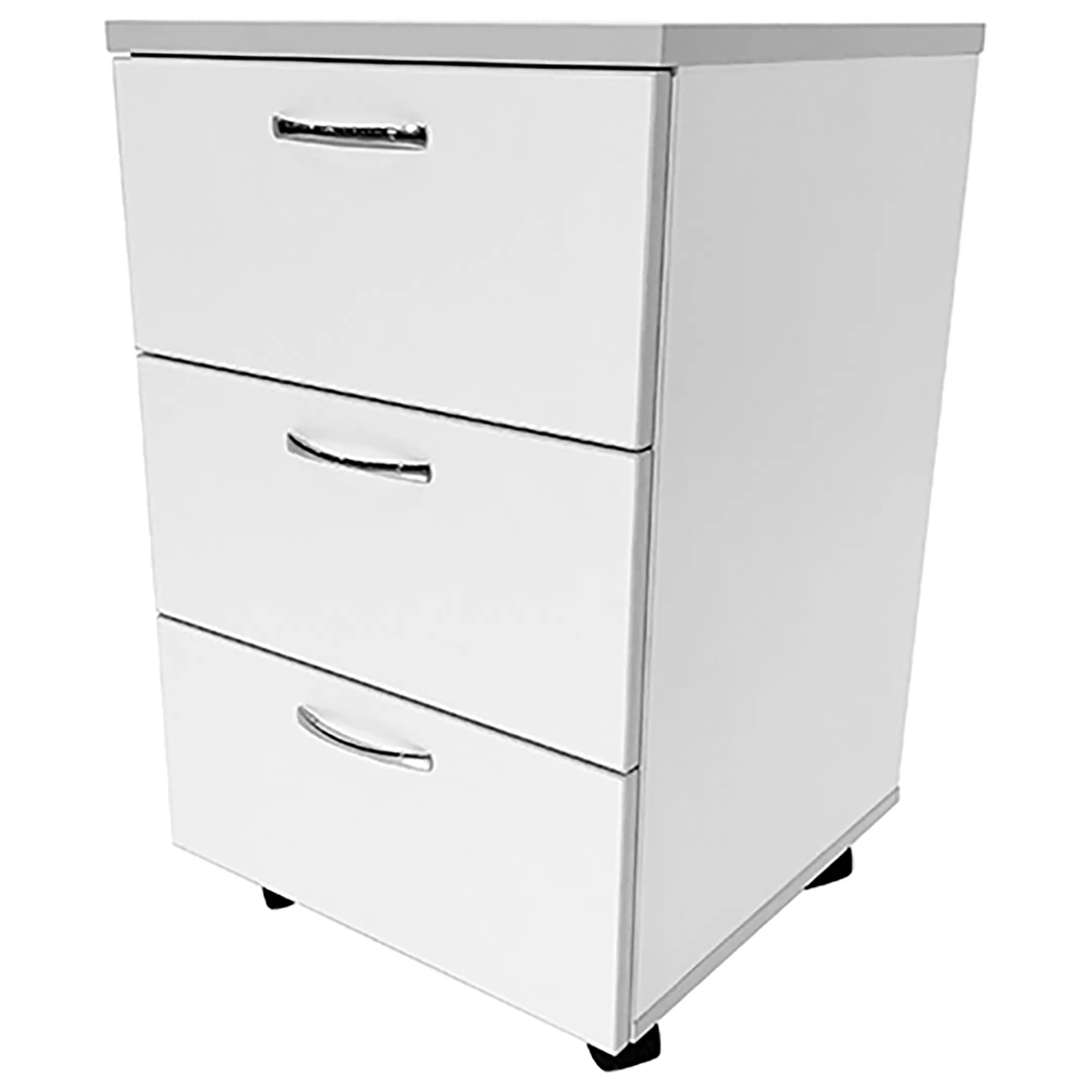 - Легкость перемещения — пластиковые ножки с колесными опорами диаметром 50 мм позволяют легко перемещать тумбу и фиксировать ее в нужном положении.