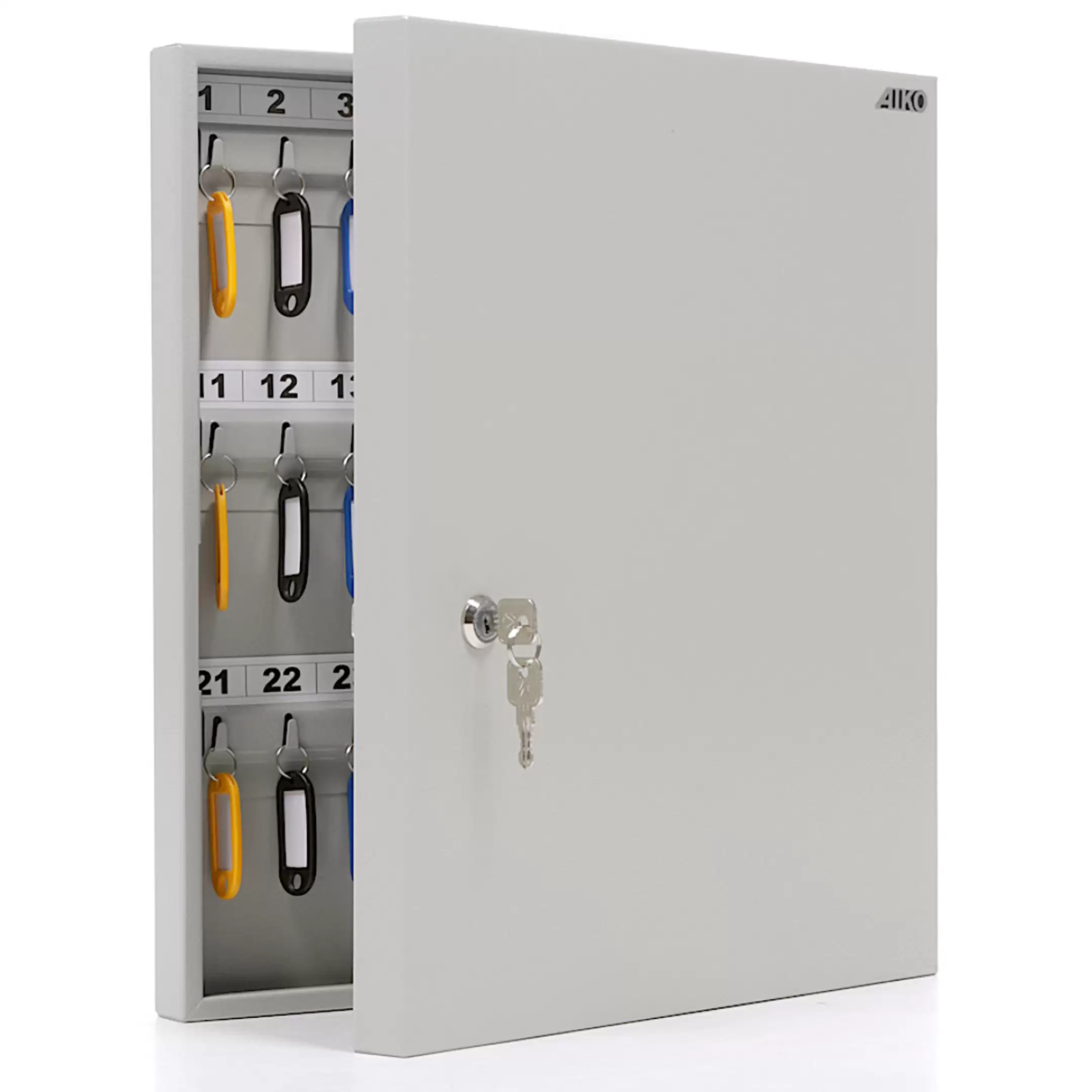 - Эффективная организация и быстрый поиск — шестьдесят пронумерованных ячеек и комплект брелков создают четкую и прозрачную систему. Это позволяет мгновенно находить нужный ключ, вести точный журнал учета и легко контролировать их выдачу и возврат ответственными лицами, повышая операционную эффективность.