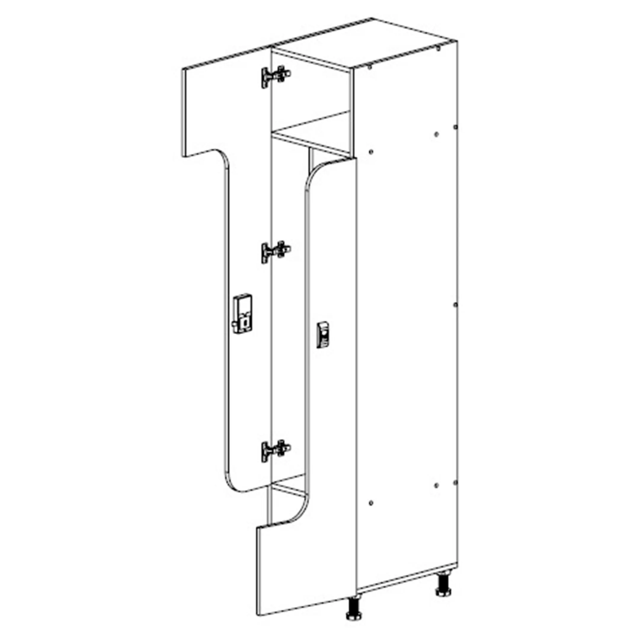 - Экономия пространства — большое количество индивидуальных ячеек в ограниченном пространстве, ширина ячейки 200 мм для одежды и 400 мм для обуви и сумок.