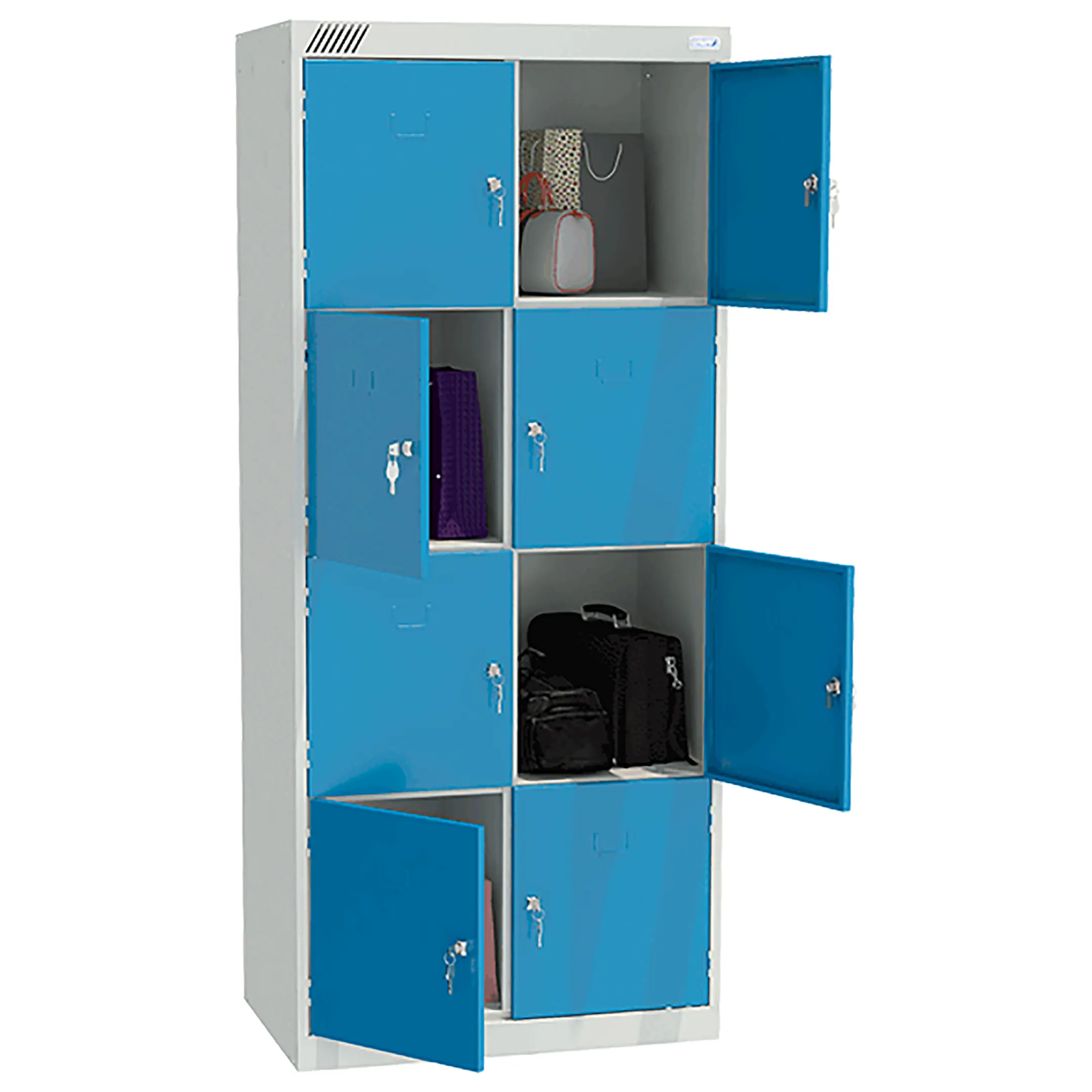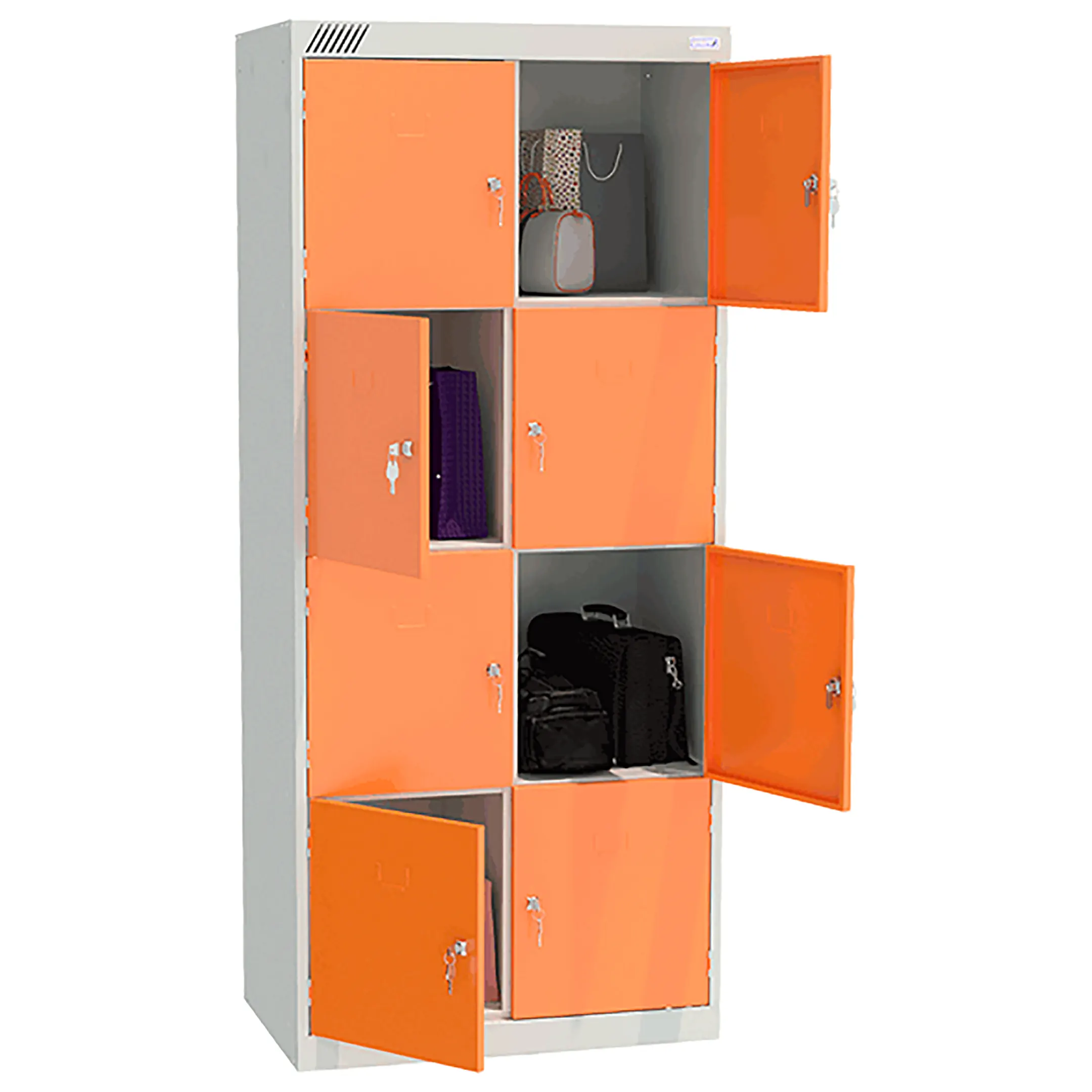 - Вместительная конструкция — две секции и восемь ячеек обеспечивают индивидуальное хранение для нескольких человек.