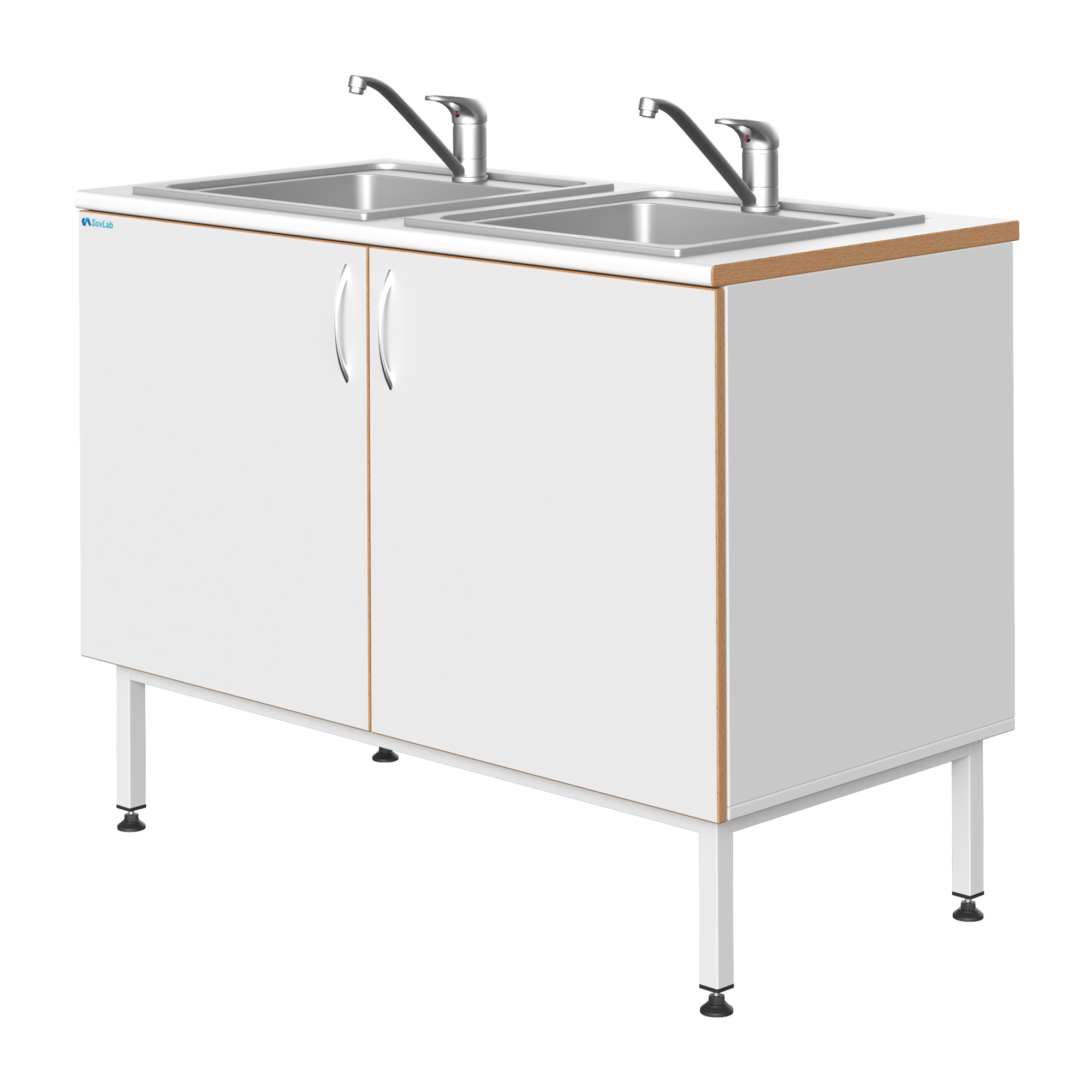 Мойка СОВЛАБ 1200 НЖ-2, двойная — это специализированное лабораторное оборудование, предназначенное для качественной и безопасной мойки лабораторной посуды, приборов и инструментов. Модель оснащена двумя врезными чашами из нержавеющей стали, смесителем и всей необходимой арматурой для подключения к инженерным сетям. Тумба из влагостойкого ДСП установлена на прочный металлический каркас с регулируемыми опорами.