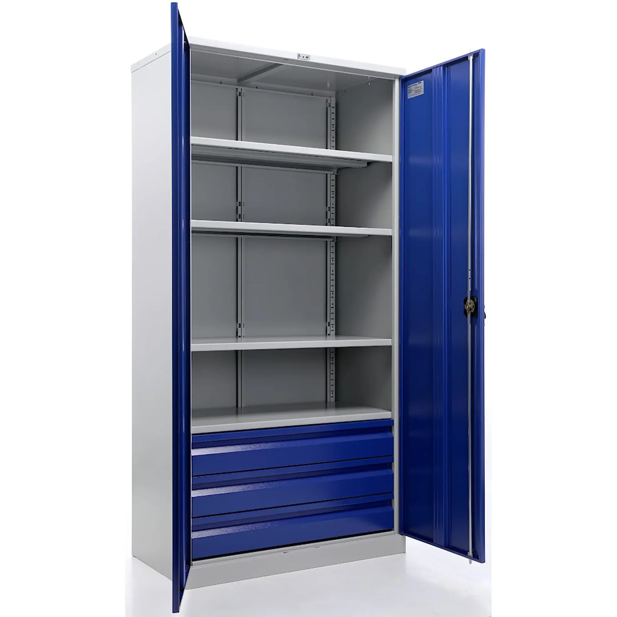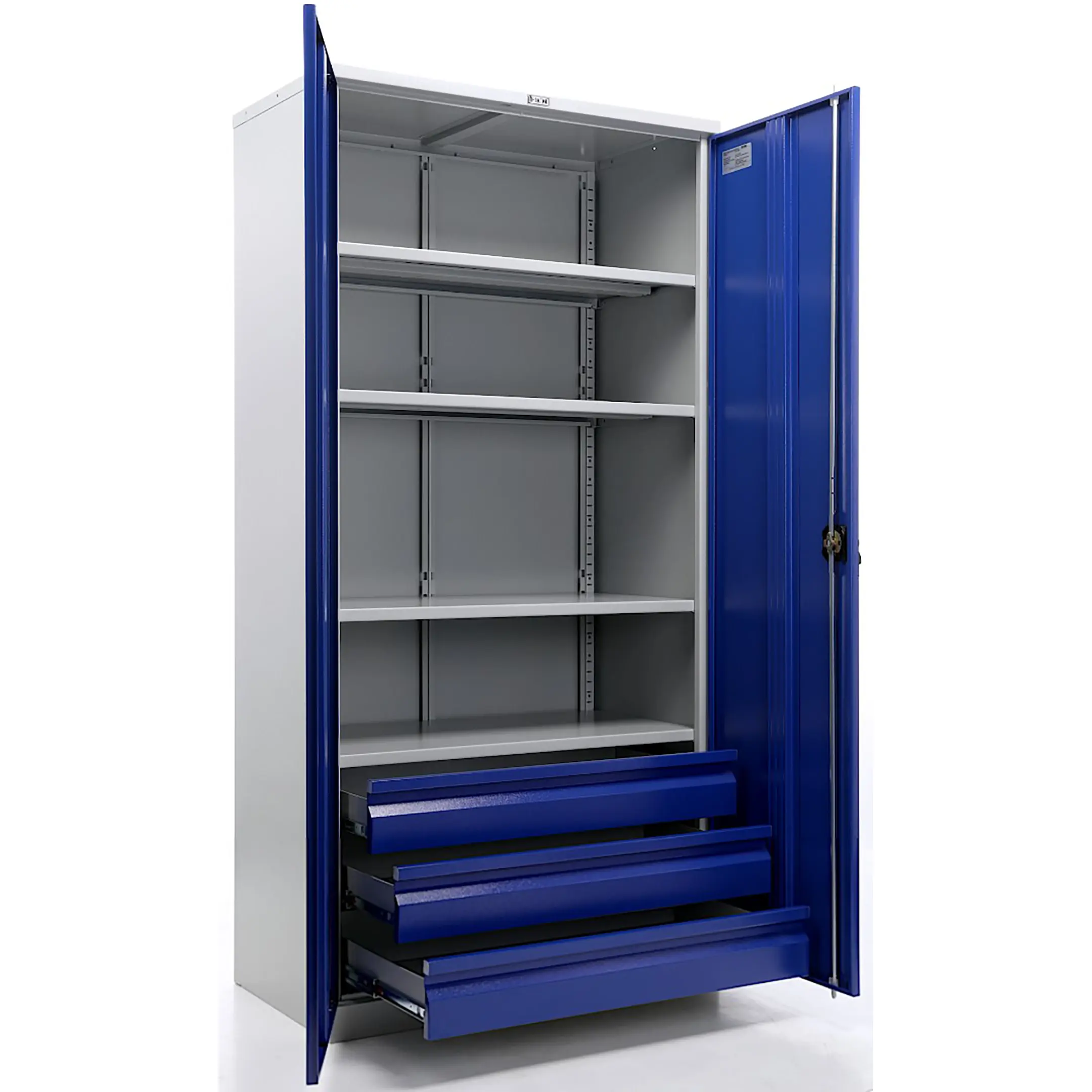 - Промышленная прочность и износостойкость — шкаф изготовлен из высококачественной стали и покрыт прочным порошковым покрытием, устойчивым к ударам, царапинам, воздействию масел, технических жидкостей и интенсивной эксплуатации в жестких производственных условиях.