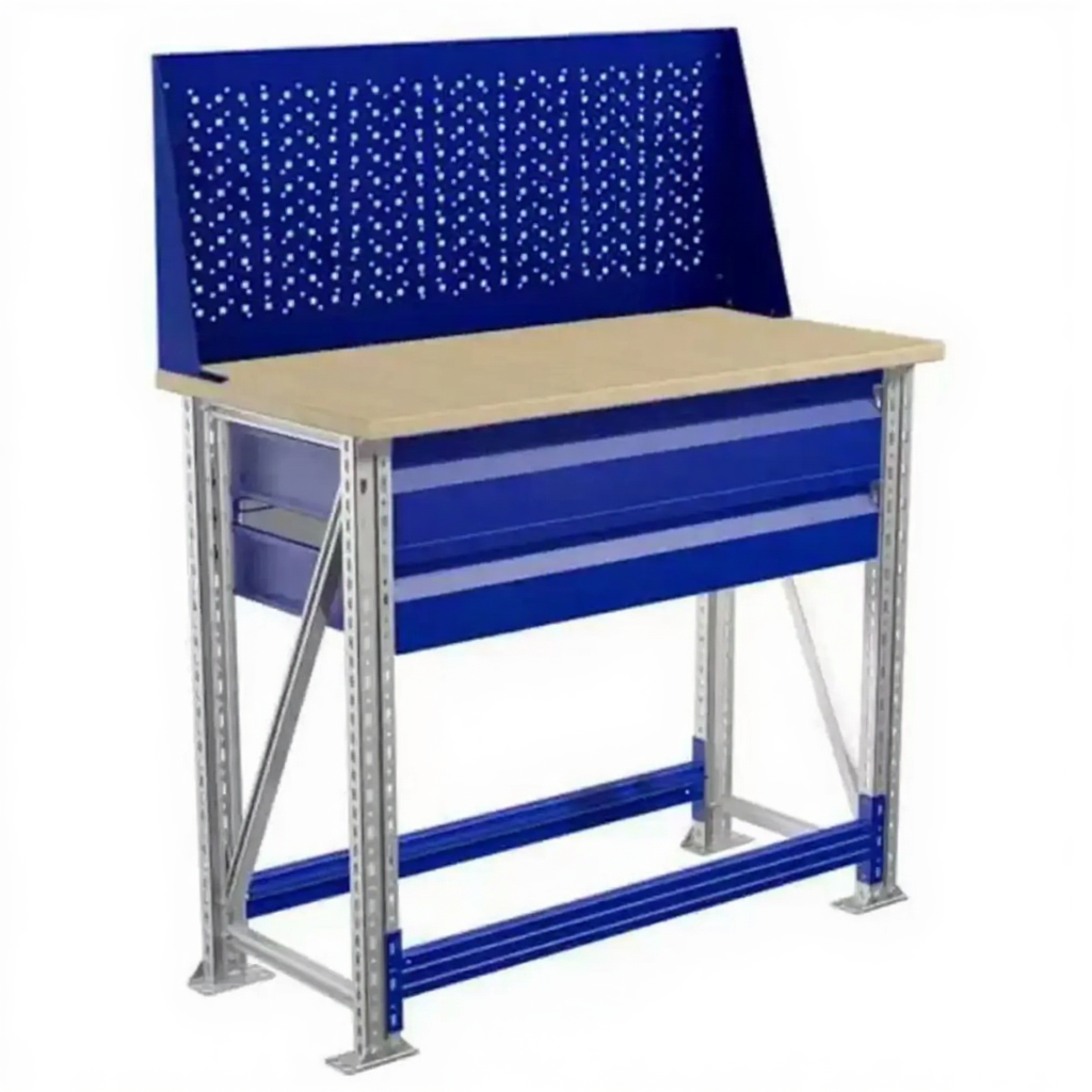 - Компактные размеры — столешница 1000х500 мм позволяет разместить верстак даже в небольших помещениях.