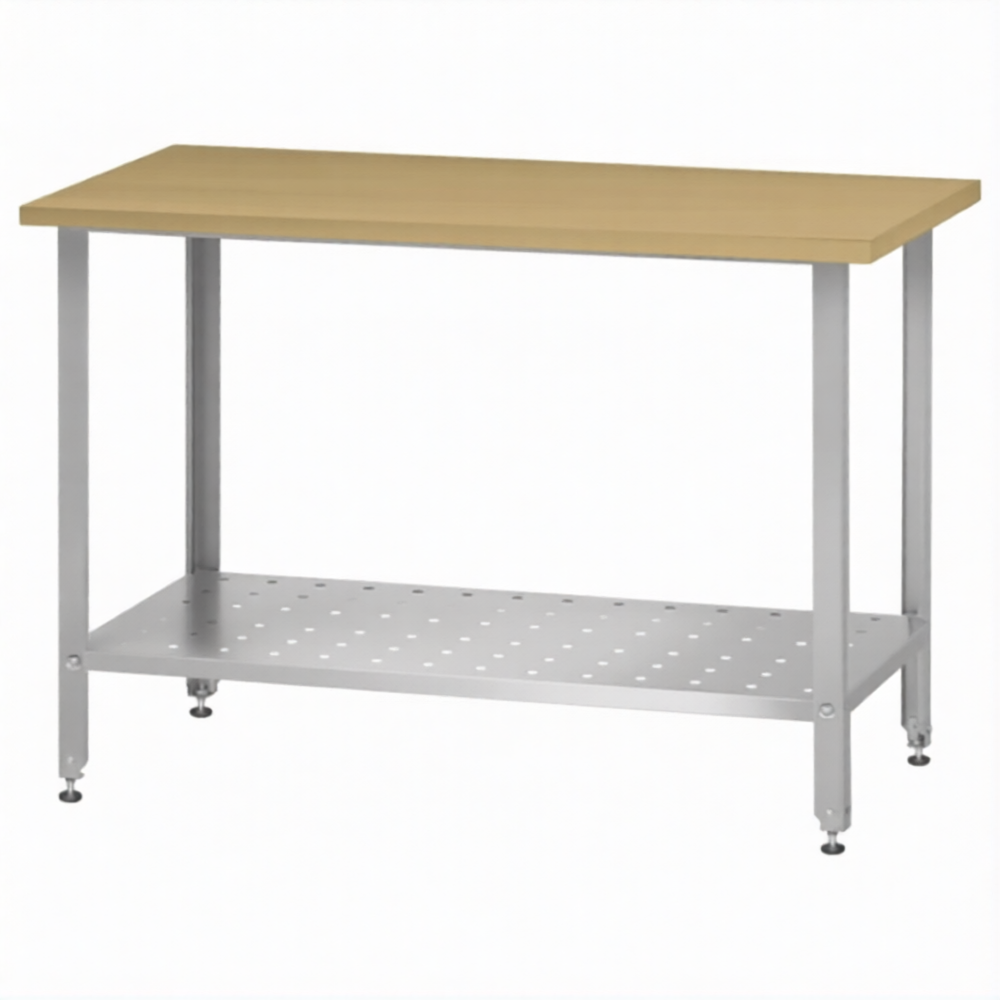 Стол кондитерский СПРн 860х1500х700 «Norma Zn» бук/40 (полка перф., ножка угловая)
