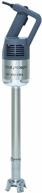 Ручной миксер ROBOT COUPE MP 450 Ultra имеет простую конструкцию и выполнен из комплектующих высокого качества, что обеспечивает длительный срок службы даже при интенсивной работе. Он значительно облегчает процесс приготовления теста и различных смесей (кремов, соусов, муссов). Миксер изготовлен по запатентованной технологии компании Robot-Coupe — он легко разбирается и все детали легко поддаются очистке. А мощный двигатель позволяет работать с большим количеством продукта.