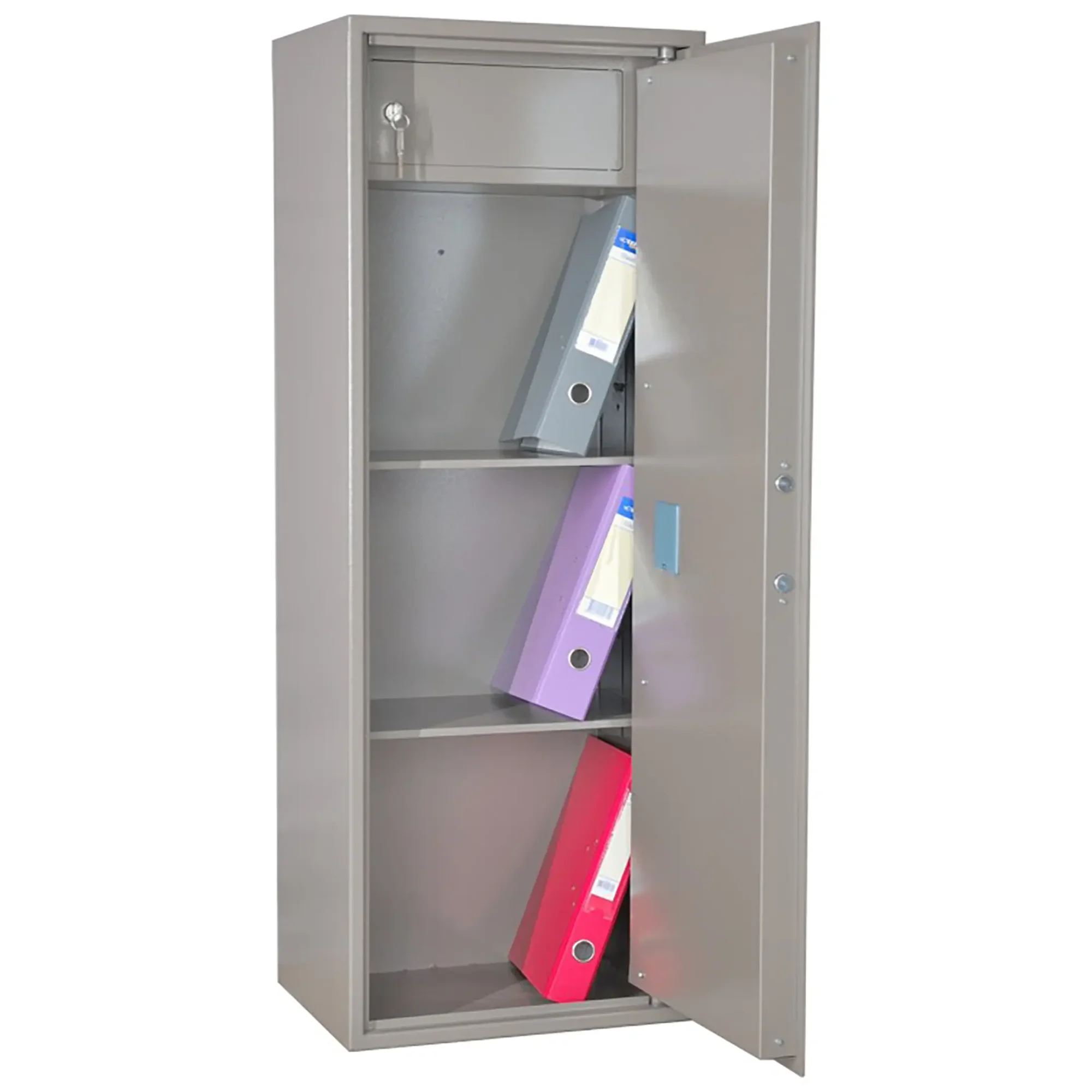 - Универсальность использования — шкаф подходит для решения широкого круга задач: от хранения архивной документации и конфиденциальных материалов до размещения медицинских препаратов и лабораторного оборудования.