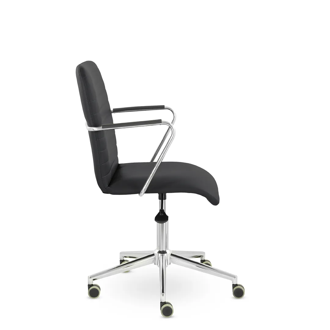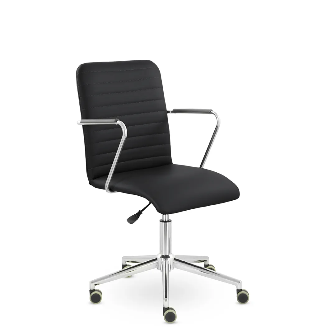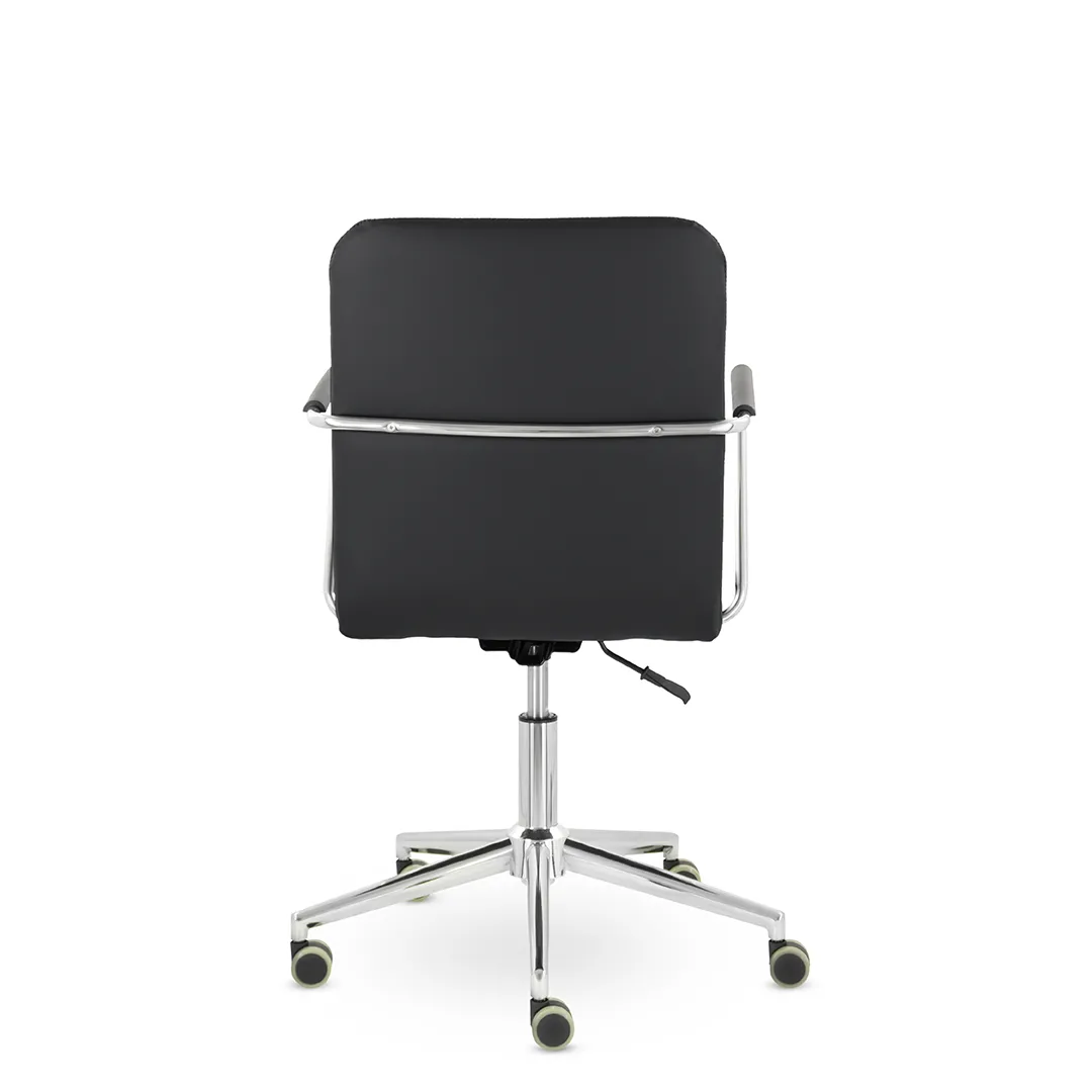 - Универсальный дизайн — сочетание классических форм и хромированных деталей делает кресло подходящим для офисов в разных стилях — от бизнес‑класса до современного минимализма.