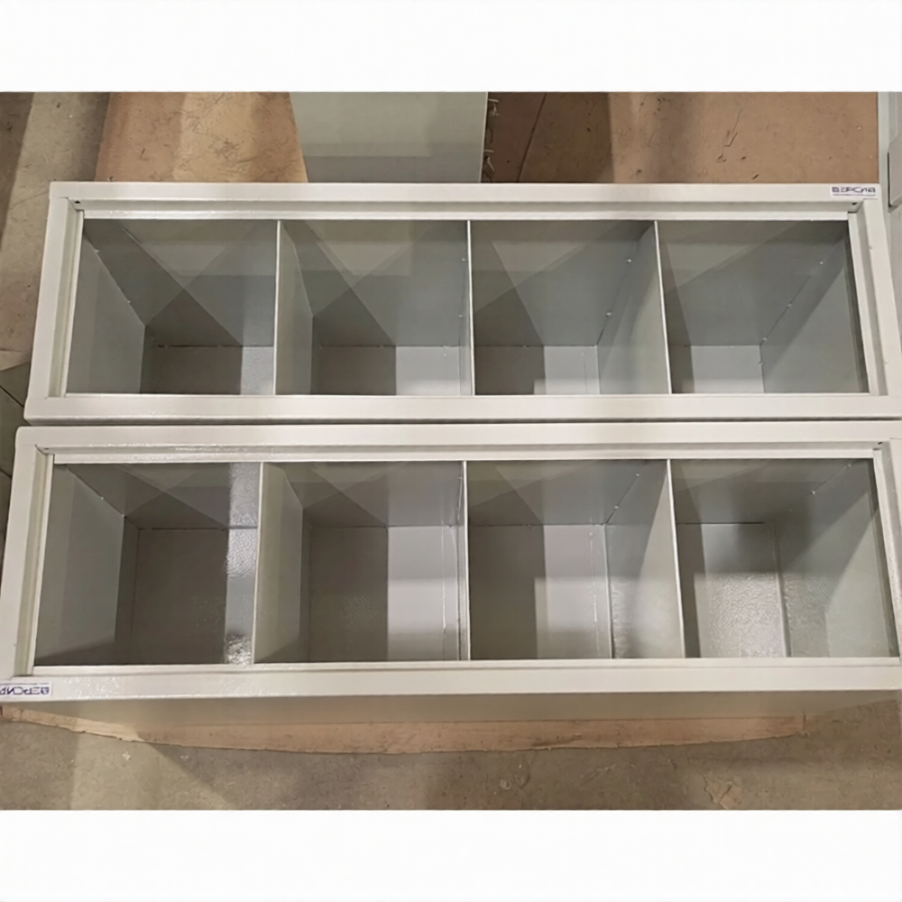 • 4 ячейки без дверей размером 265х870х380 мм каждая.