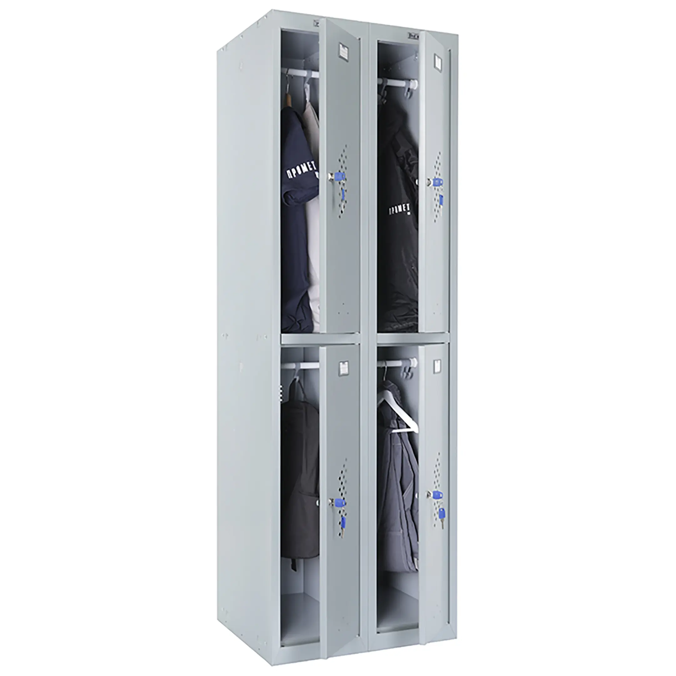 • опции (под заказ, уточняйте у менеджера): замком PL*** (вместо ключевого замка устанавливается бесключевой замок Euro-locks A129 с устройством под навесной замок), кодовый механический или кодовый электронный (по запросу), для камер хранения или фитнес центров; полка под обувь, подставка или скамья-подставка под шкаф, наклонная крыша