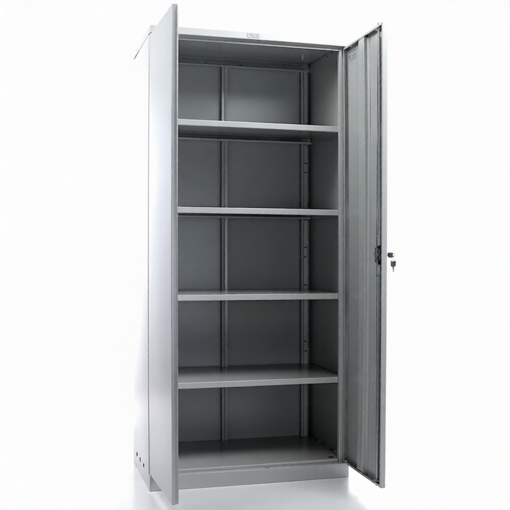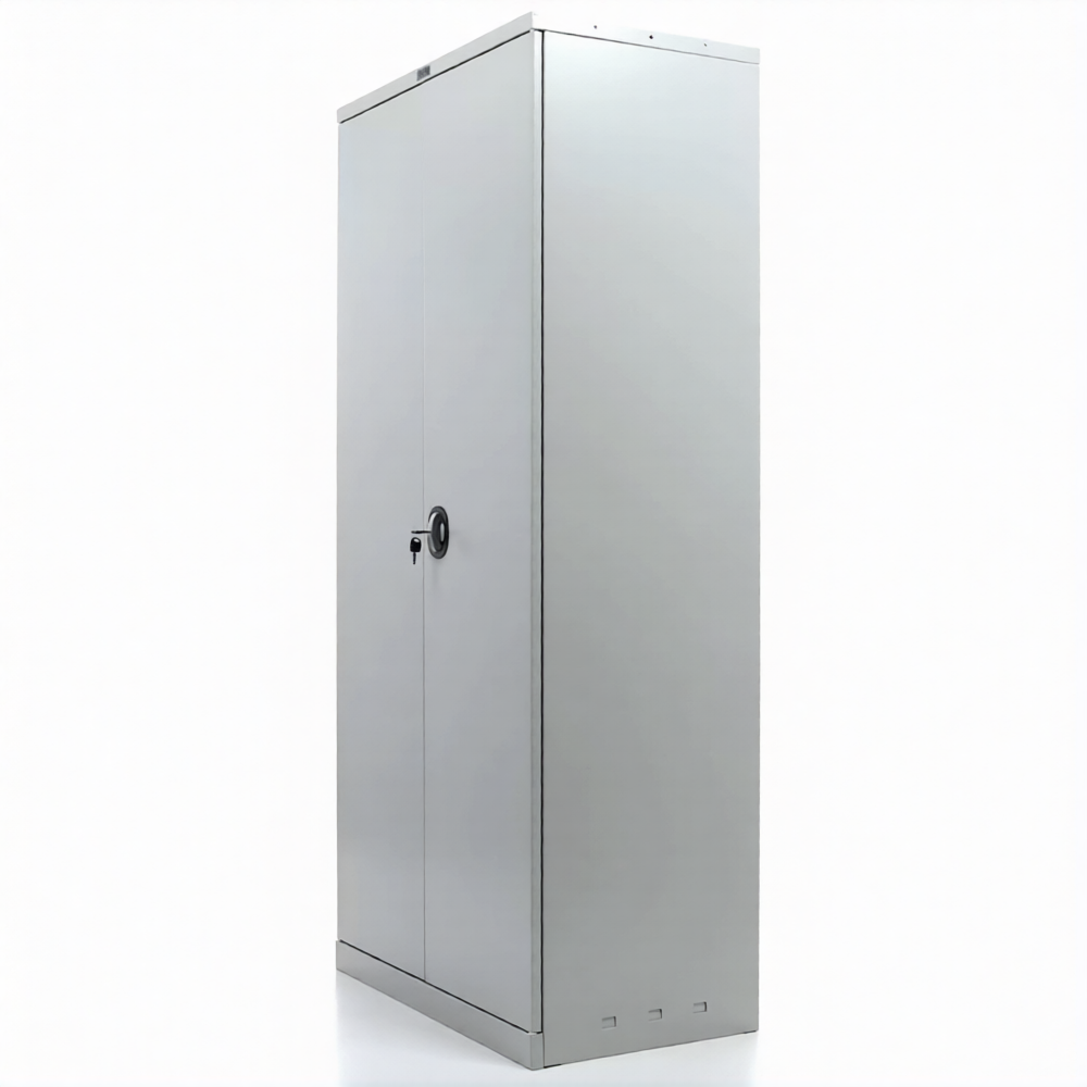 - ригели из оцинкованной стали и пластиковые втулки обеспечивают бесшумный ход дверей и надежное запирание шкафа;