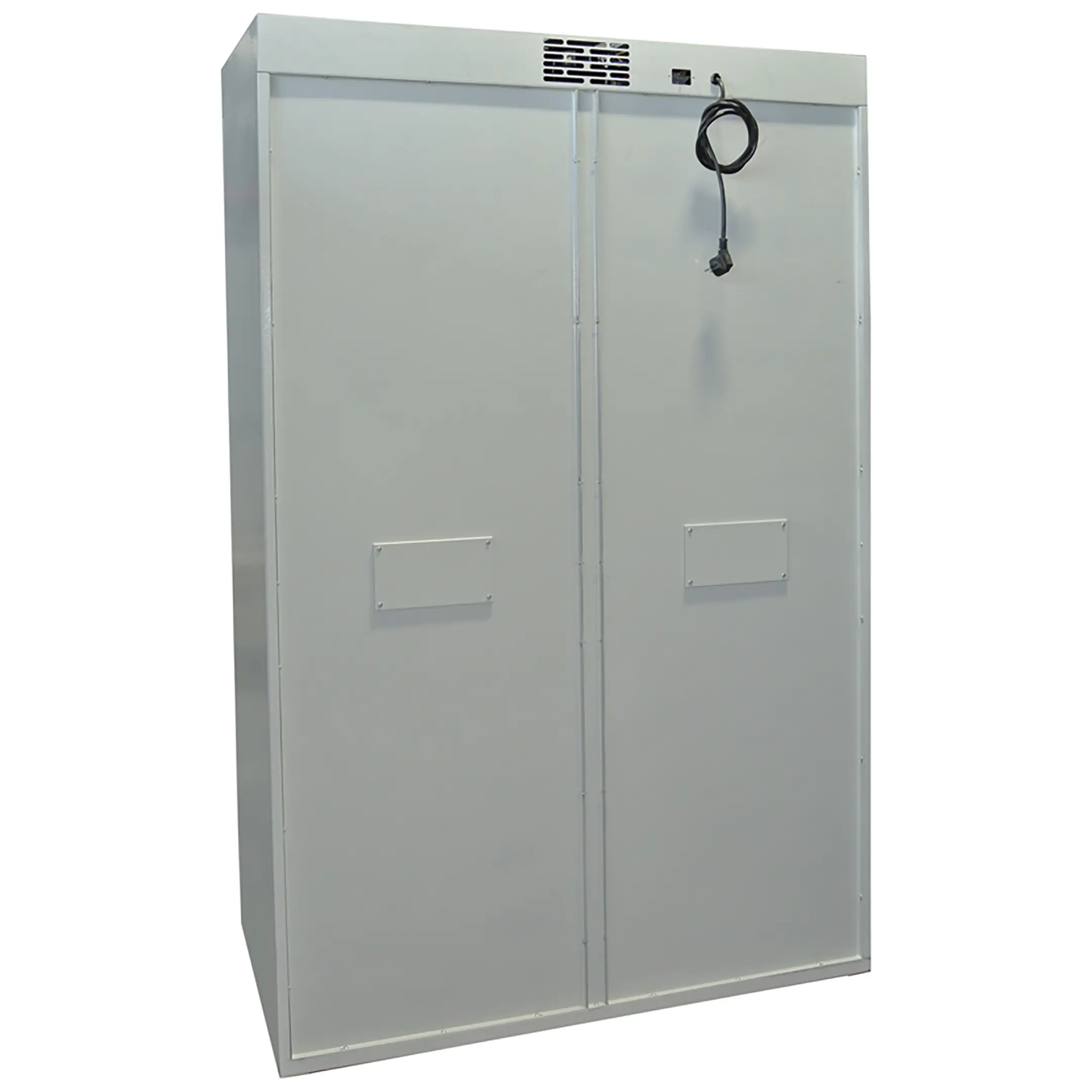 - Универсальность и компактность — шкаф предназначен для одновременной сушки как одежды (спецодежды, спортивной формы), так и обуви. Его компактные габариты делают модель идеальной для помещений с ограниченным пространством, таких как небольшие раздевалки, кабинеты персонала или учебные классы.
